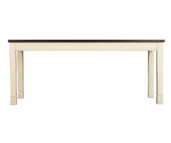 • Two-tone finish with brown tabletop and distressed vintage white base